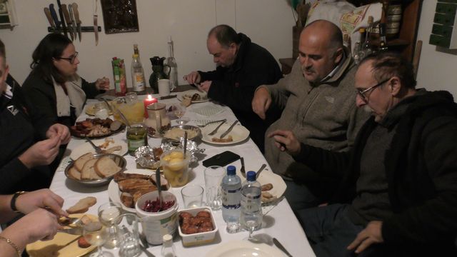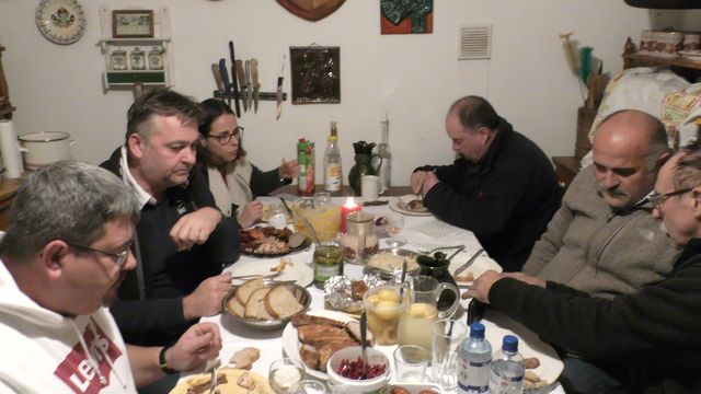 Fried bacon, confused goose liver, piglet oven, steamed beef leg, tongue cheese, sausages, salami, livers. Bread, pickles, and pastries were'nt all missing, and the host had excellent rosé and white wine. The pictures prove the authenticity of my chronicle. (Our corsairs ate during the official part!)