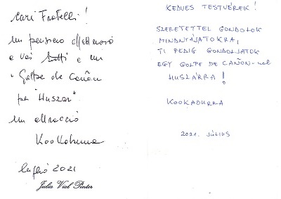 Then Vitéz connetable asked for the floor and told us that his son had paid a visit to Kookaburra commodore in the summer, who welcomed the Hungaria brothers of the Parti brothers. He also sent gunpowder to hold a firing squad in memory of Hussar commodore at the end of the year. I have scanned his words of welcome here: