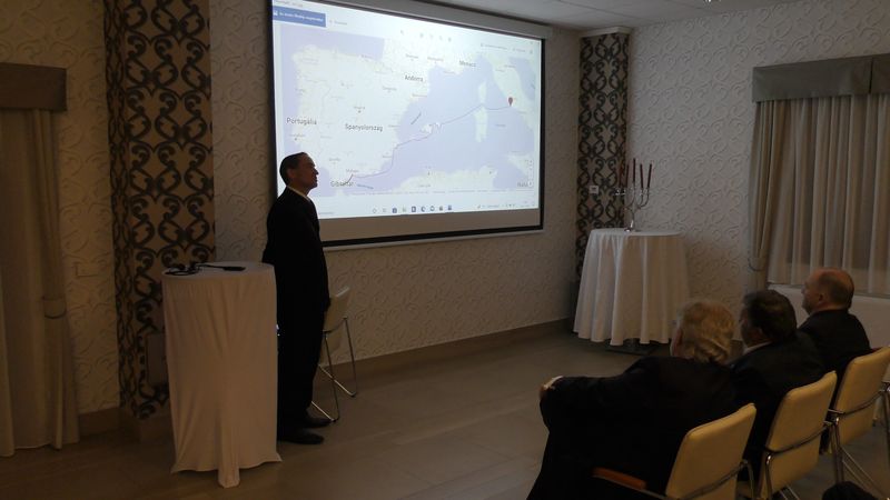 The next item on the agenda was a report by our brother Viharmadár on his sailing across the Atlantic Ocean, which he illustrated with pictures. Our brother took part in the ARC race in 2002 with six of you and completed the 2700 nm between Gran Canaria and Saint Lucia in 17 days.