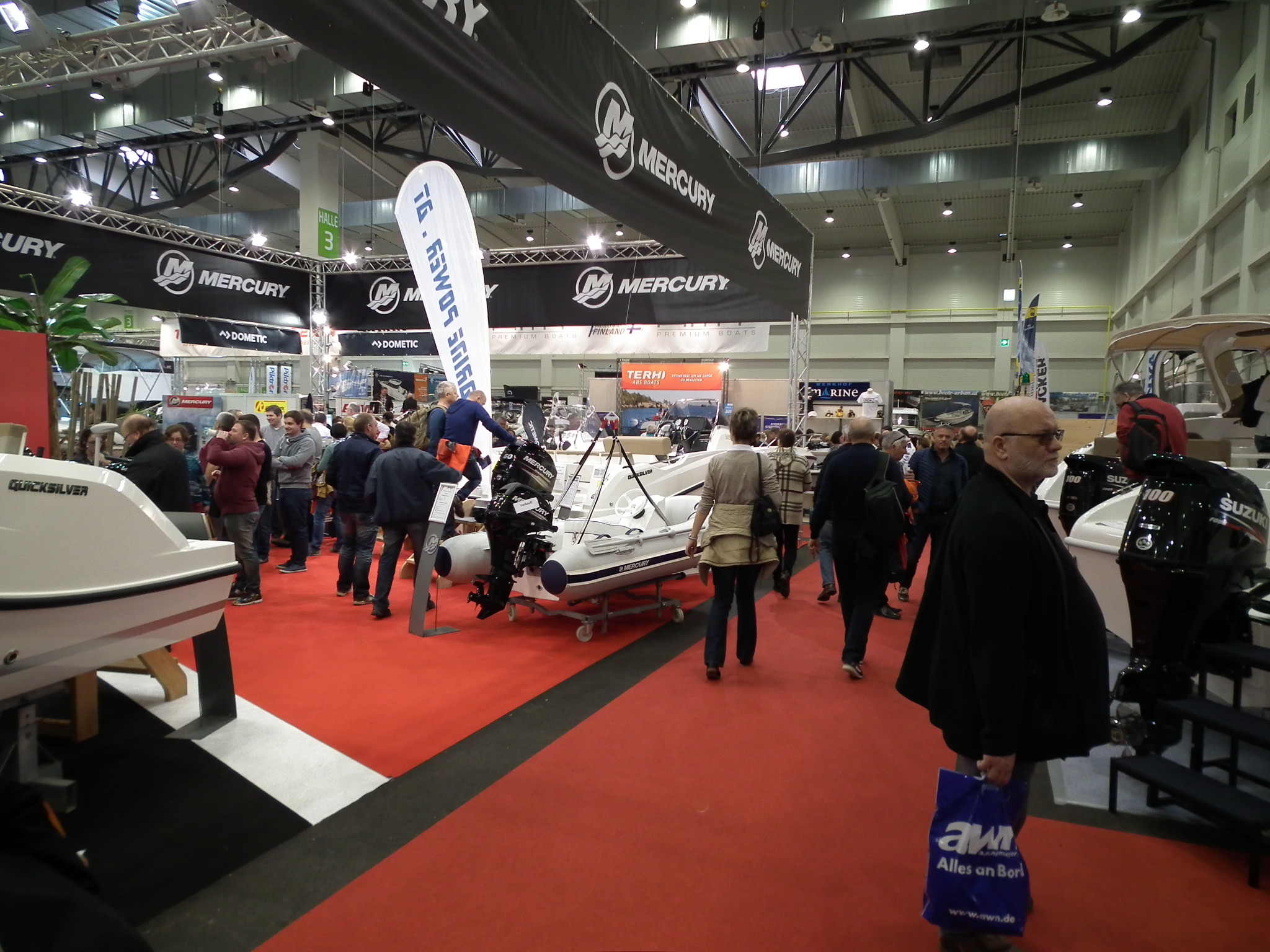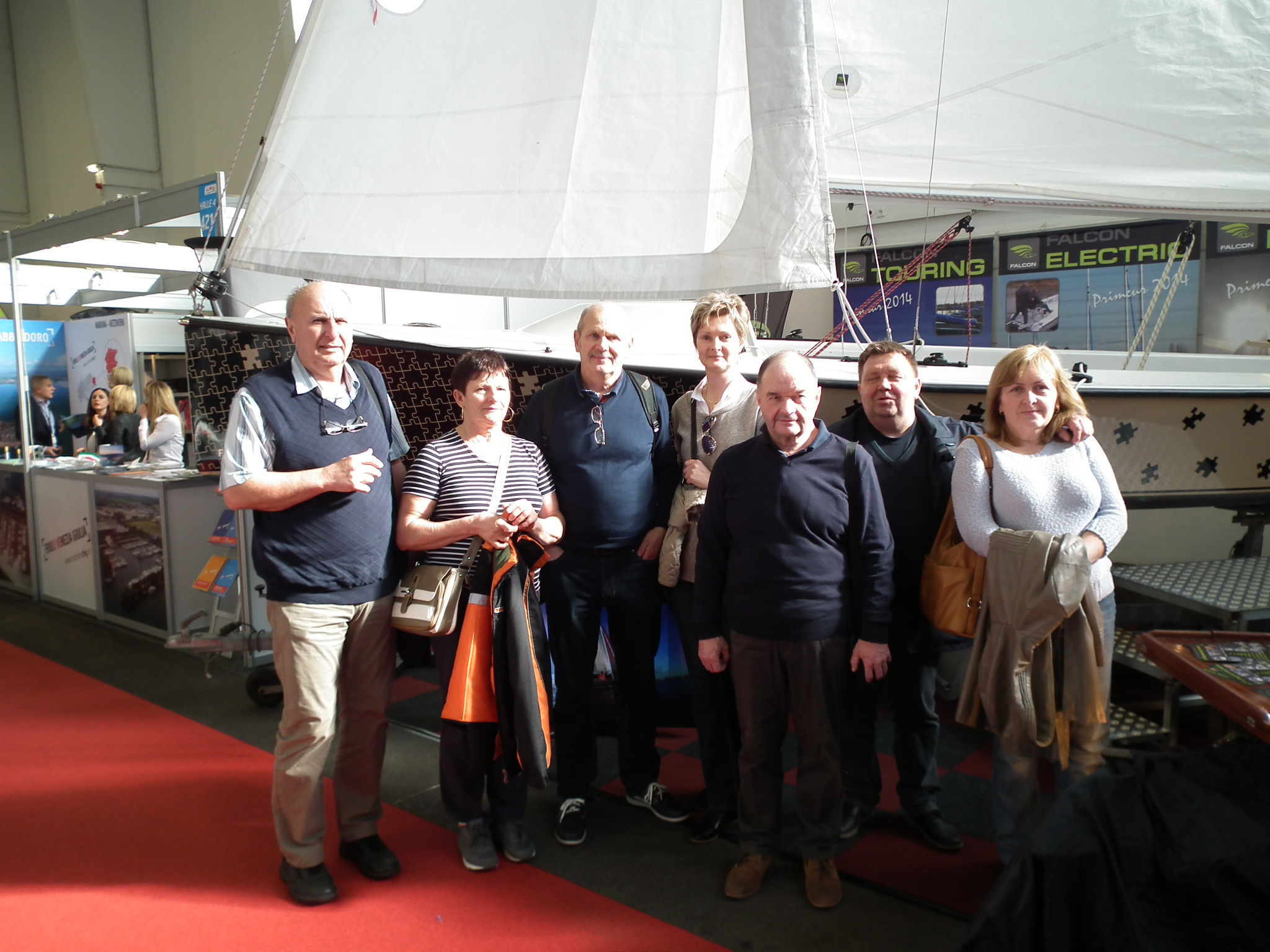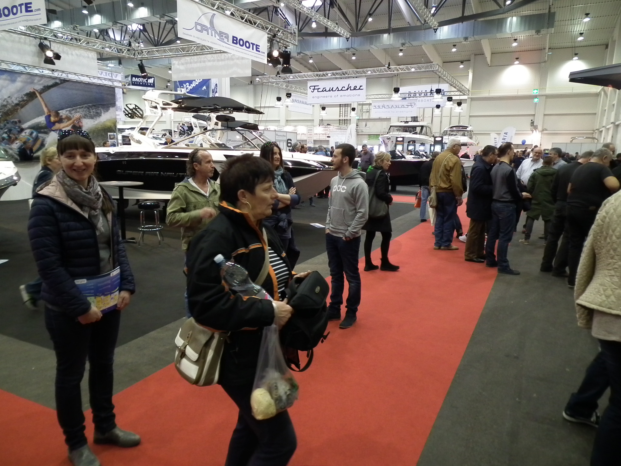Rögtön megállapítottuk, hogy a jó időnek is köszönhetően rengetegen kilátogattak, nem csak a helyiek, hanem sok hazánkfia is. A kiállítás rendezvény szempontból nem ért fel a Düsseldorfi szintre, láthatóan a kisebb méretű hajók adták a gerincet, és csak a Dufour és a Bavaria hozott 41 lábnál nagyobb hajót. Erősen nyomul és teret követel az elektromos hajtás, már a Solana 35 is ezzel büszkélkedett. A motoros hajóknál is megfigyelhető volt ez a tendencia. Láttam egészen futurisztikus formájú motorost is, csak azt nem tudtuk eldönteni, hogy hogyan kell vele partfalhoz kötni? Külön csarnokot kaptak a búvárok, a turisztikai cégek, a felszereléseket és kiegészítőket gyártók.