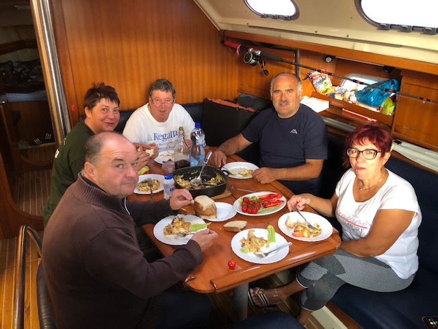 Szombaton reggeli után nekivágtunk a visszaútnak Kastellába. Jó erős szélben, vitorlák nélkül kb. 3 óra múlva komoly hánykolódás közepette megérkeztünk.