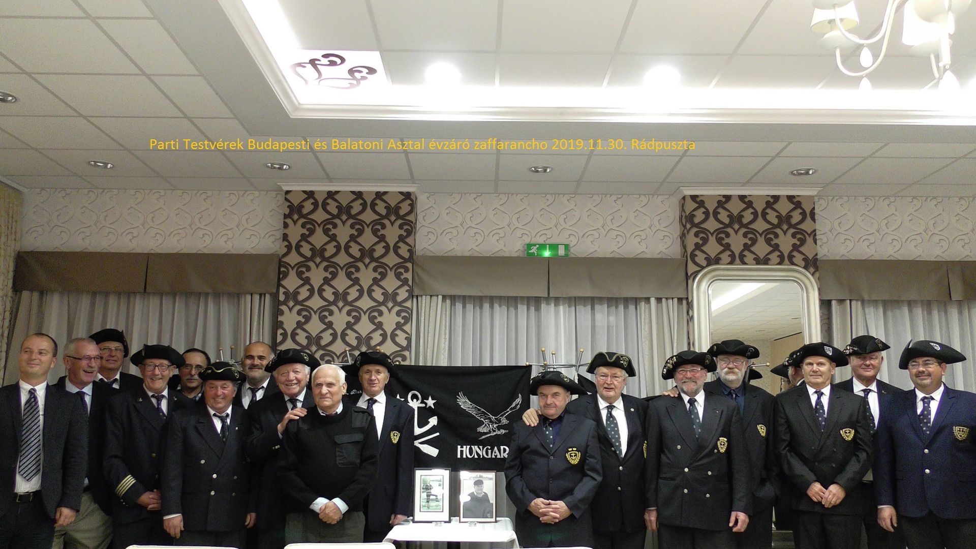 2019.11.30-án 16 órakor kezdődött a Budapesti és Balatoni asztal összevont évzáró Zaffaranchója a balatoni asztal szervezésében. Az előzetes jelentkezések alapján 32 fő részvételével számoltunk, és 30-an időben meg is jelentünk a helyszínen. (A teljes névsor a naplókban.)