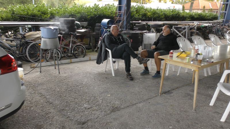 Jómagam és corsarám érkeztünk ½ 9-kor elsőnek, mert az ebédre tervezett gulyást a helyszínen főztem meg, aminek - lévén 6 kg marhalábszárból készítve – nem kevés idő kellett. Majd megérkezett 10-kor Lupo di Mare egy nagy tepsivel, amely babos káposztás ágyon kemencében sült malacságokat rejtett. Az előkészületekhez tartozott, hogy corsarám elhozta kedvenc automata kávégépét is, hogy megfelelő minőségű kávét tudjon adni. A gép azonban megsértődött, hosszabbítóval nem volt hajlandó működni. De amíg erre rájöttünk és megoldottuk, egy kicsit ideges volt a hangulat.