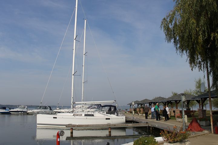 Vasárnap a reggeli elfogyasztása után többen közösen elindultunk Abádszalókra, megnézni az abádi, és a szalóki kikötőket. Itt már van vitorlás élet is, láttunk néhány hajót, főleg kisebbeket, S22-est, Jeannou 20-ast. Aztán a szalóki kikötőben megálltunk egy Hanse 36 mögött, és megpróbáltuk megfejteni, hogy egy ekkora hajó mit is keres itt. Nem állítom, hogy rájöttünk, de véleményünk, az volt…