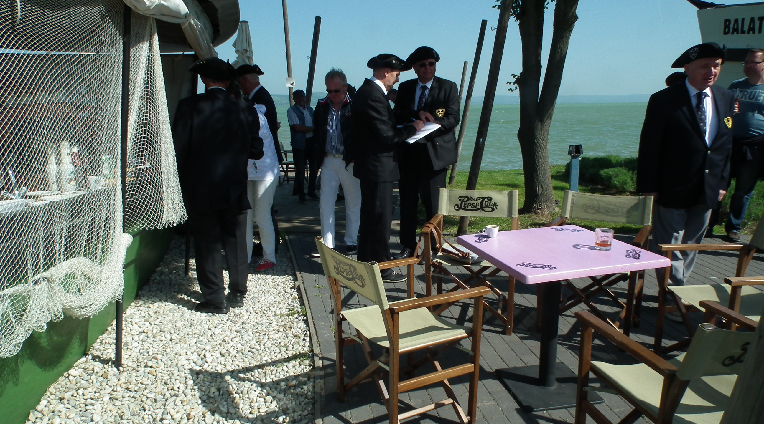 A hivatalos ünnepség után 12-órakor könnyített ruházatban hajóra szálltunk, és átvitorláztunk Révfülöpre. A Phoenix vitte a jelenlévők többségét, de Clochard testvérünk hajóján is 8-an „szorongtunk”. Kellemes kelet-északkeleti szélben 25 perc alatt átért a két hajó, és elfoglaltuk a Nádas büfé megterített asztalait. Kellemes beszélgetésekkel, anekdotázással színesített ebéd és fagylaltozás után ½ 3 órakor elindultunk a Phoenix-el Boglárra, Clochard testvérünk pedig Balatonszemesre. A visszaúton Phoenix kapitány a Balatoni Asztal résztvevőivel zártkörűen átbeszélte az októberi nemzeti zaff. avatási feltételeit. A döntések alapján a Balatoni Asztal írnoka írásban értesíti az érintetteket.
