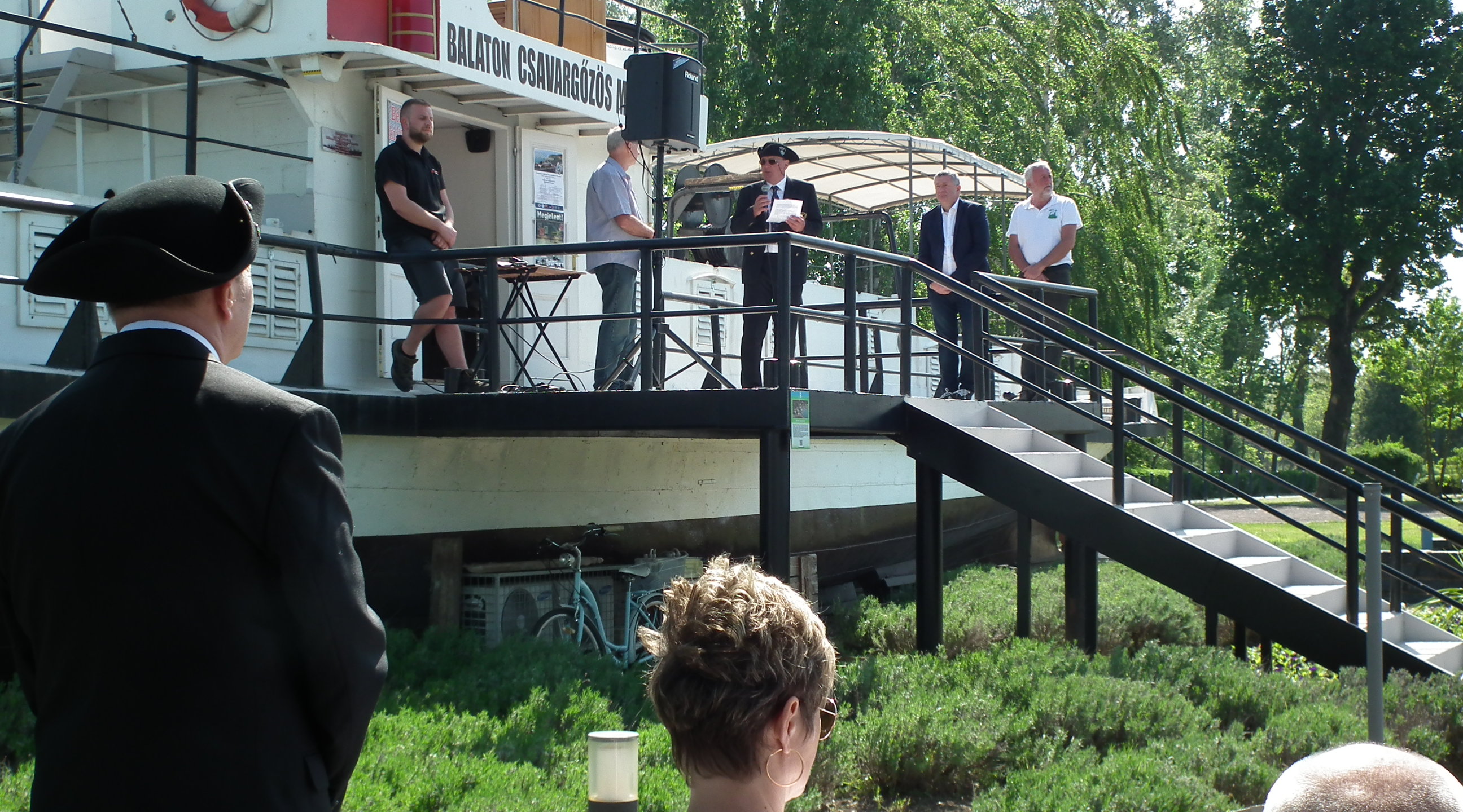 Szikrázóan napos, gyönyörű időben kezdett gyülekezni a vidám résztvevők sokasága a Balaton csavargőzös szezonnyitó ünnepségére. A Bárka kávézó melletti területen szívélyes beszélgetéssel várakoztunk a megnyitó kezdetére. Kopasz Árpád úr 10 óra 15-kor felvezette a balatonboglári és a révfülöpi polgármester urakat, valamint személyemet a hajó fedélzetére, és elkezdődött az ünnepség. Amint az már hagyomány, a két település vezetője üdvözölte az egybegyűlteket, emlékeztetve a jelenlévőket, a csavargőzös embereket és sorsokat összekötő múltjára, és a jelenkornak szóló üzenetére. A Parti Testvériség nevében köszöntöttem a résztvevőket, és a Balaton csavargőzös 146 éves történetét ismertettem, az alábbiak szerint.